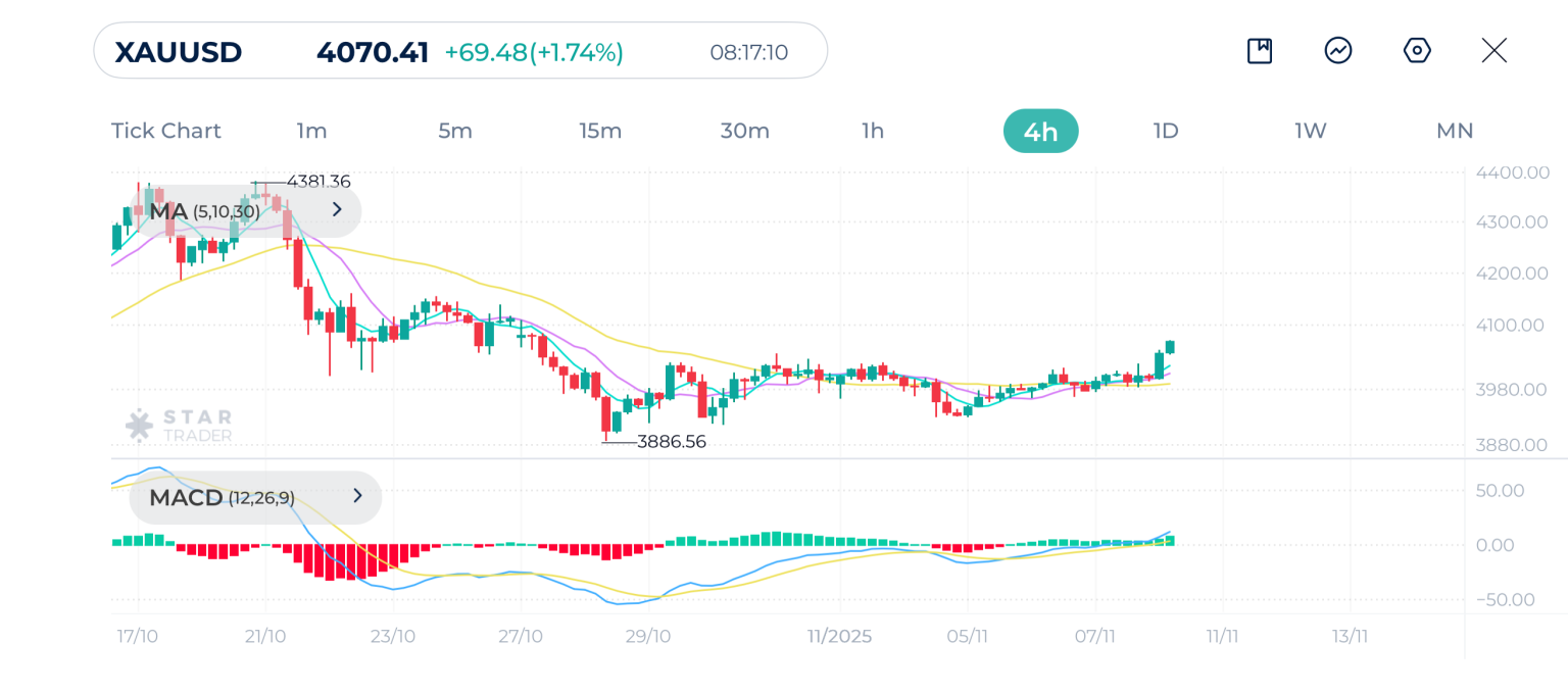 Gold has started to regain strength after a prolonged consolidation phase around the $3,900 level, showing renewed bullish momentum with the latest breakout above $4,000. The recent upward move pushed the price above short-term moving averages, confirming a bullish crossover and suggesting that buyers are regaining control.