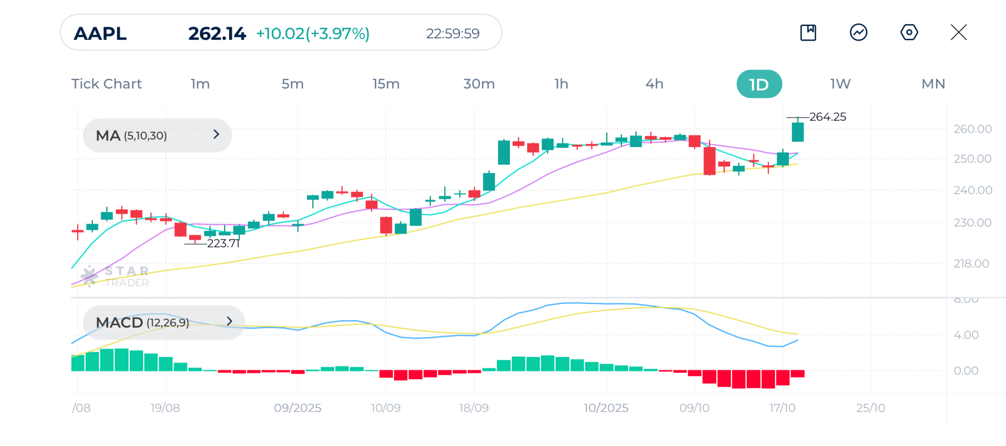 Overall, momentum and technical structure remain firmly bullish. As long as price stays above $255, Apple may continue trending higher toward $270–$275.