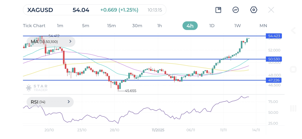 Silver regains strength from its steady recovery over the 50-day SMA near 45.60, advancing back toward the historic peak of 54.40. A clean move above this ceiling would signal a resumption of the broader uptrend, attracting more momentum buying and opening the door to new record highs with potential targets near 56.50 and 59.00. A persistent lack of sustained selling, more than mere profit-taking, would confirm that the medium-term bullish structure is still valid.