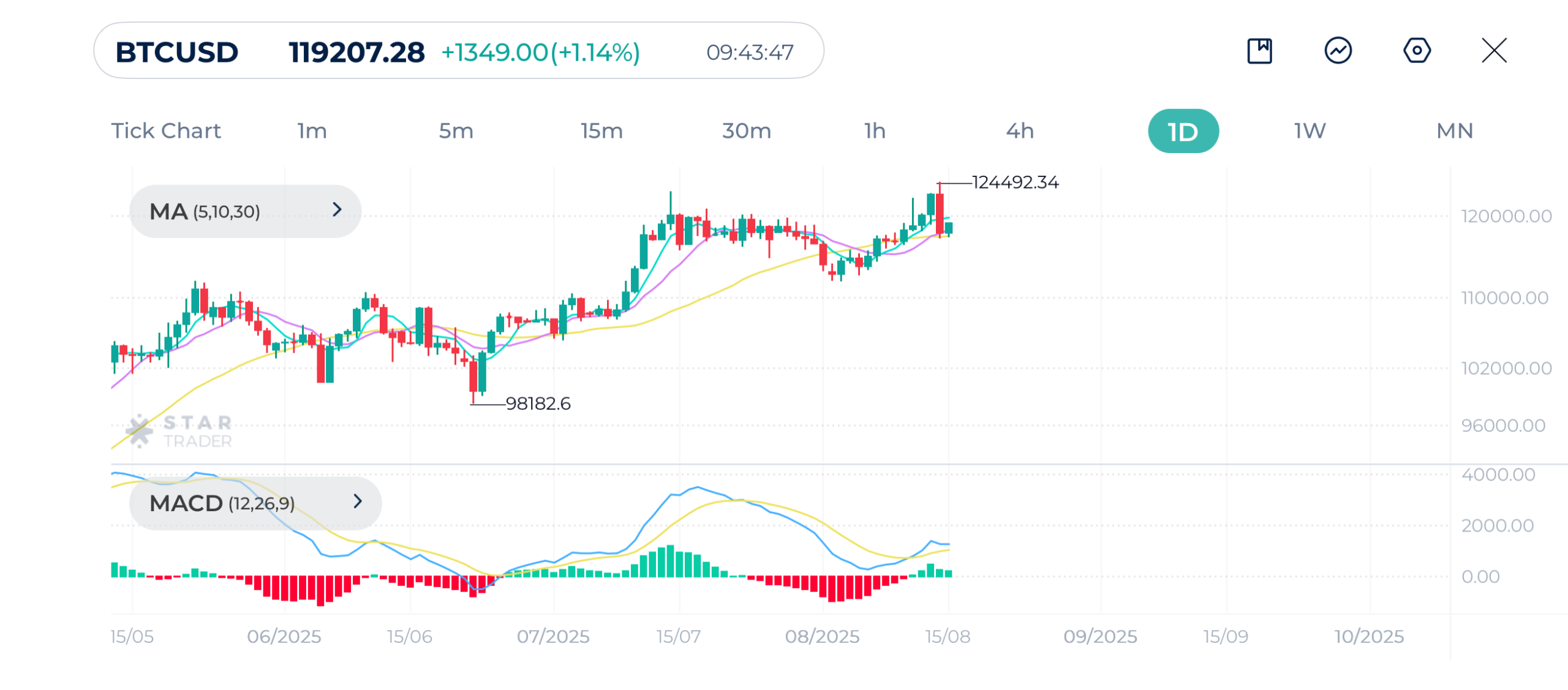 Bitcoin surged past the $124,500 mark for the first time in its history before profit-taking pushed it back toward $117,000 levels by Thursday. The upward move was fueled in part by Trump’s executive order allowing crypto assets to be included in 401(k) retirement plans.