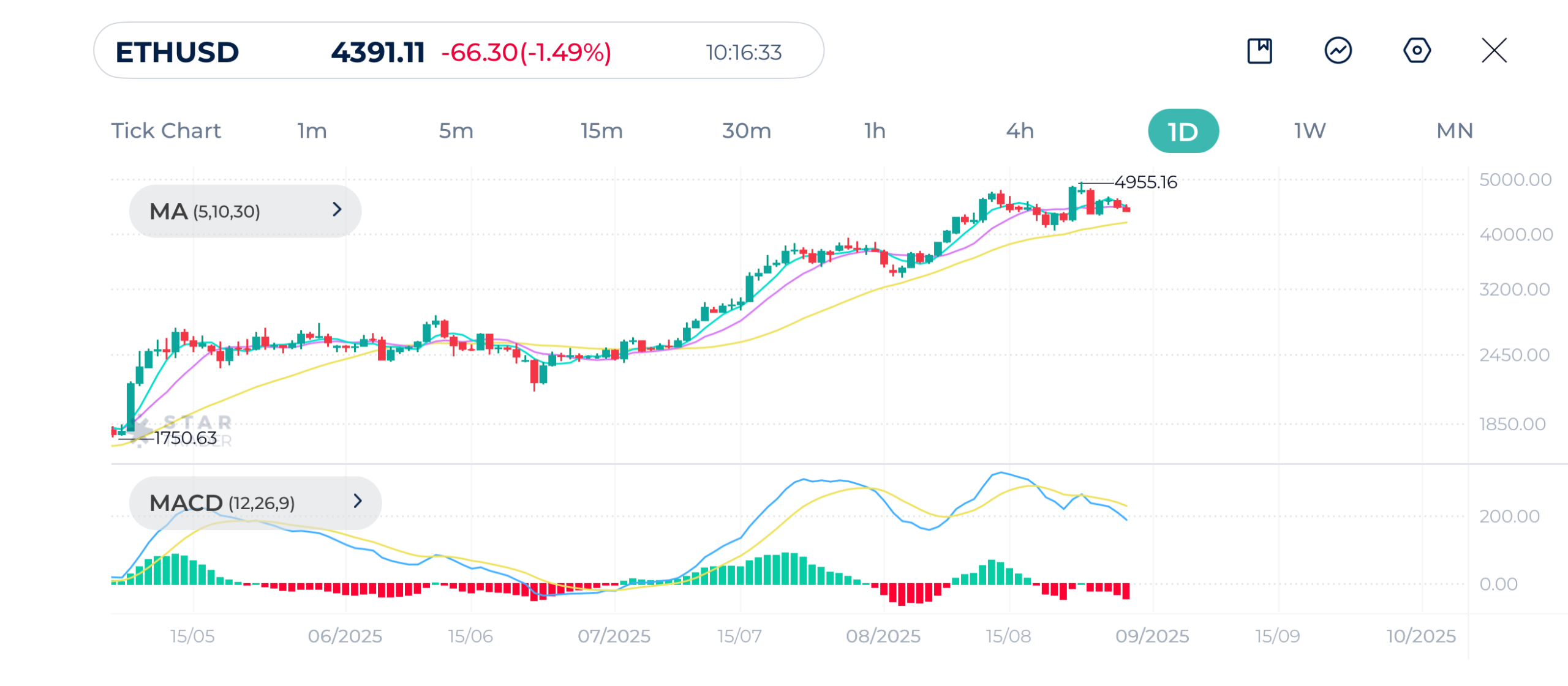 Ether responded positively to the news and jumped to a new record high of $4,955 breaking the previous record high in 2021. Another catalyst for these spikes was on-chain data which showed a sharp uptick in active addresses and smart contract activity, hinting at growing real-world utility through DeFi and tokenization. This combination of regulatory optimism and strong network fundamentals amplified Ethereum’s gains beyond Bitcoin’s.