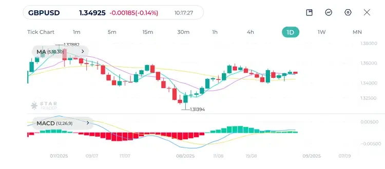 The 5-day and 10-day moving averages are sloping upward, crossing above the 30-day moving average, which shows a bullish signal. Price is well-supported by short-term averages.